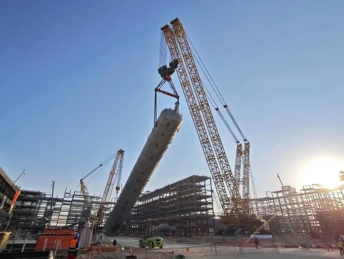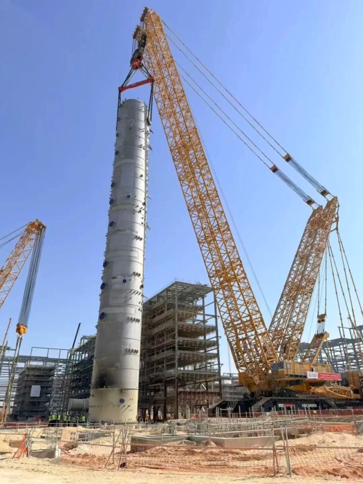 此次吊装的塔器体积庞大、结构庞大,加之外地风速多变、沙尘频发,对高空作业的精度与设备稳定性组成严峻考验。