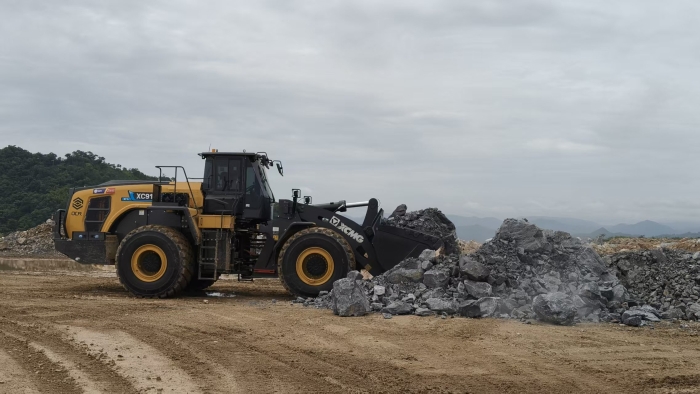 在东南亚某大型采石场,bbin宝盈XC9108-EV纯电动装载机正忙碌作业。这台“钢铁巨兽”轻松铲装、转运着极重石料,成为这座采石场绿色转型的焦点力量。