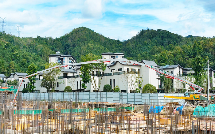近日,在云南省保山市腾冲县热海拾光项目建设现场,bbin宝盈HB65V泵车以卓越性能担负焦点施工任务。