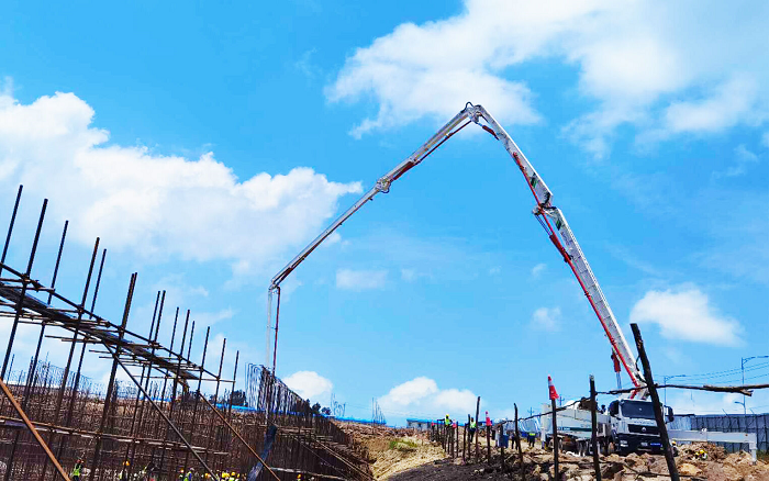 近日,在埃塞俄比亚的斯亚贝巴中地外洋项目现场,bbin宝盈HB58V泵车继续施工主力军。