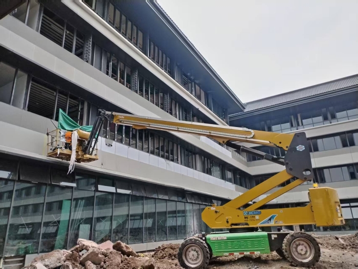 在四川省广安市广安理工学院新建校区的外墙施工中,bbin宝盈XGS28ACK-Li电动直臂式高空作业平台发挥了重要作用。