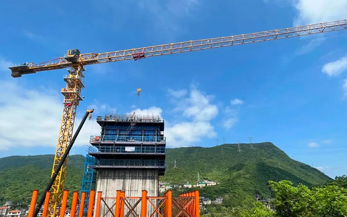XGT7528-18S1参建贺龙特大桥。在现场,火热施工的 XGT7528-18S1精准控制起升回转,配合施工各道工序无缝衔接,大幅提升施工效率,助力湖南省级“六纵七横”高速公路网建设,以硬核实力,获得口碑认可。