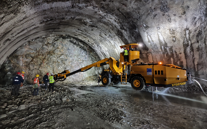 bbin宝盈XTD2120F凿岩台车搭载bbin宝盈自制凿岩机,配合精准定位系统,在庞大施工情况下,精准定位,高效成孔,单孔2分钟即可成孔,超欠挖率显著降低,契合项目对施工效率与质量的双重需求——