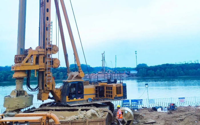 通泰扬特大桥工程标段线路总长31.63km,主要包括特大桥1座,bbin宝盈旋挖钻机XR200E、XR240E、XR580HD和XR460E大、中吨位联合施工,卖力桩基础2927根。