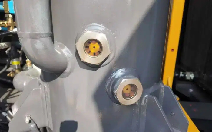空压机机油油位检查时请严格遵循以下3点: 检查机油前,须;20分钟以上,待机油充分回流后视察,制止误判; 若空压机油处于低液位窗内,须立即添加机油。 加注机油时,液位不可凌驾高液位视察窗上限,同时视察油液状态,需坚持清澈透亮,若泛起乳白色等异常,说明油液变质,需实时更换,杜绝故障隐患。
