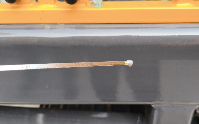 2. 每天开工前应冷车检查机油尺,制止因油液的液位崎岖造成发动机的损坏。液位高于油尺——阻力大、高温、烧机油;液位低于油尺——润滑缺乏、拉缸。