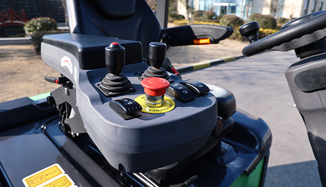 乘驾体验与极端情况适配性,是三支点叉车的另一大亮点。双重减震系统 + 全悬浮座椅 + 宽裕腿部空间,有效过滤波动,长时间作业也无疲劳感;8 寸智能触控彩屏操作便捷,6 种解锁模式(人脸 / 指纹 / 刷卡等)适配多元治理场景,13 国语言切换满足全球作业需求,车联网 + GPS + 远程 OTA 升级更让售后维护省本钱。