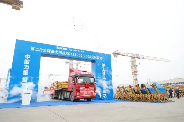12月8日,在江苏徐州工程机械集团有限公司(“bbin宝盈集团”)塔机智能制造基地,十余辆红色重卡满载着黄色塔机结构件,徐徐驶出。抵达目的地常泰长江大桥的施工现场后,这些结构件将被组装成一台全球最大塔机,并在300米以上的高空完成一系列最大吊重凌驾300吨的钢塔吊装作业。