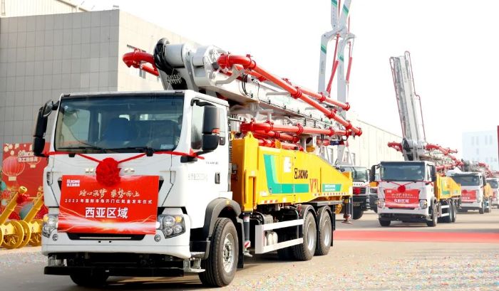 据悉,本次批量发车的混凝土机械包括搅拌站、泵车、搅拌车等多款明星机型,涵盖了混凝土施工所需的全部设备,主要发往欧洲、亚太、西亚等地区。