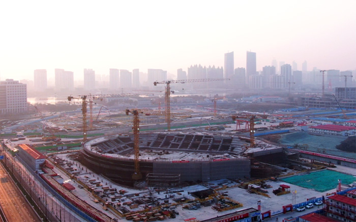 该项目造型奇特,主赛场区域结构庞大,同时接纳大宗的曲线设计,给现场钢筋、水泥预制件的制作与装置带来了巨大挑战,也对塔机的综合性能提出极高要求。