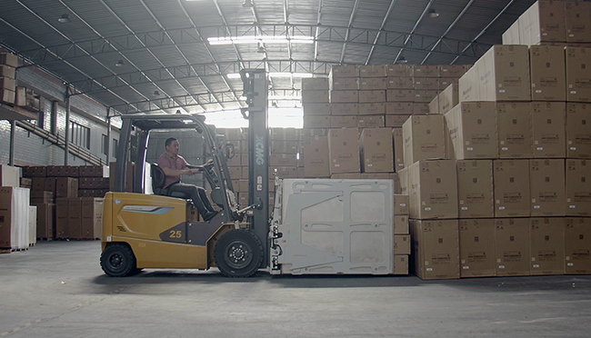空调等家电单品价值高,鲲鹏电动叉车配备OPS宁静防护系统、转弯降速等功效,属具方面专门为客户定制了纸箱夹,高支点转向桥,减小转弯时车身摆动幅度,进一步确 ;跷锖腿嗽蹦。
